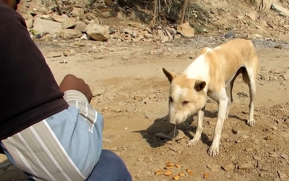 The rescuers were worried to see that the dog looked more like a pig due to the massive swelling on his face. The dog readily greeted the rescuers with tail wags and even accepted their treats, but he flinched in pain every time the rescuers tried to touch him. After a number of failed attempts to grab the dog, the rescuers eventually had to use a net to secure the poor creature.