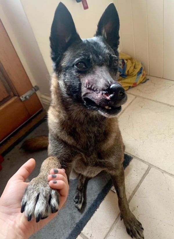 Surgery was performed in Beijing and Angel was flown to the United Kingdom by the kind folks at Rushton Dog Rescue. All it took was one look for 25-year-old Hollie Cornes and she knew she wanted to adopt Angel. Even though she already had surgery, she would need more work and more procedures to help the dog live a happy, healthy life. Cornes said Angel’s CT revealed, “her nose was completely sealed over with scar tissue, so she wasn’t breathing through that side of the nose at all, but a 2mm hole the other side.”