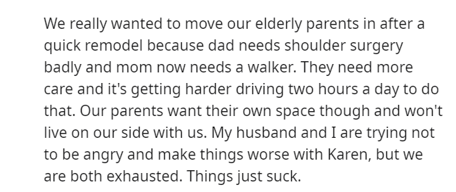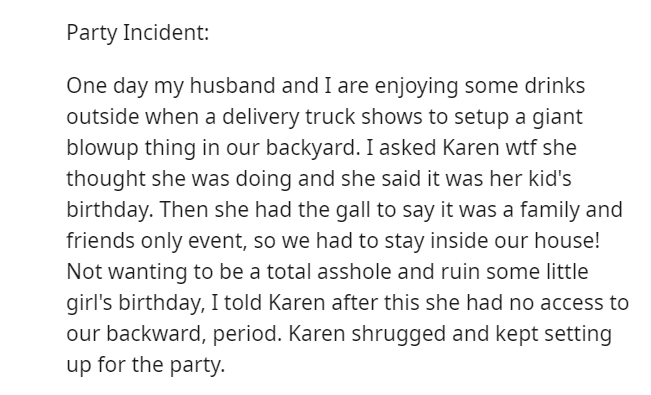 As tensions escalated, Karen’s family requirements necessitated the use of the other half of the duplex, leaving the Redditor in a delicate predicament.