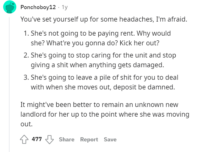 The Reddit user is on better terms with them now.