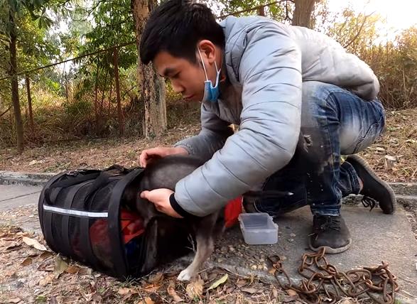 We quickly went there to rescue the little dog .we bagged him to spare the dog .After that , we had to spent about 30 dollars to buy the dog.