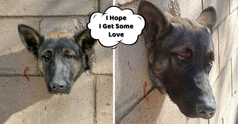 On Monday afternoon, Rebel managed to get stuck in a cinder block wall. When officers arrived at the scene, they found the young pup slightly uncomfortable and understandably confused—but still cheerful and wagging his tail.