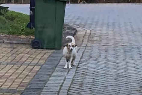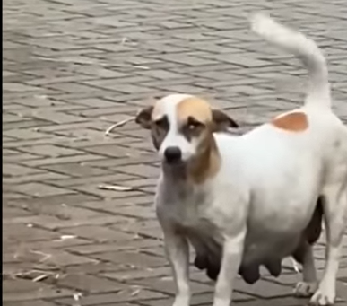 Meet Cherry! She is a homeless mother dog, living on the streets with no one to help her. Oh my God. She is pregnant, she is close to giving birth. Although with a heavy stomach, she still tries to go door to door in the village to find food. Mostly, no one gives her food, they even chase her away.
