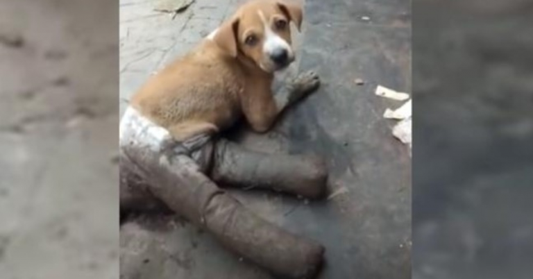 Puppy Had Her Legs All Bandaged Up Before Being Abandoned On The Street