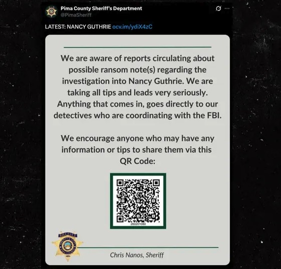 The possible ransom note set a deadline for the ransom and suggested that harm could come to Savannah Guthrie’s 84-year-old mother, Nancy, if the demanded amount wasn’t met. According to the site, the note specifies “a substantial amount of Bitcoin … the amount is in the millions” and includes a deadline — along with an ominous “or else.”