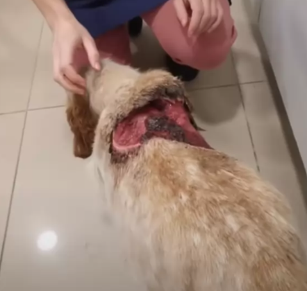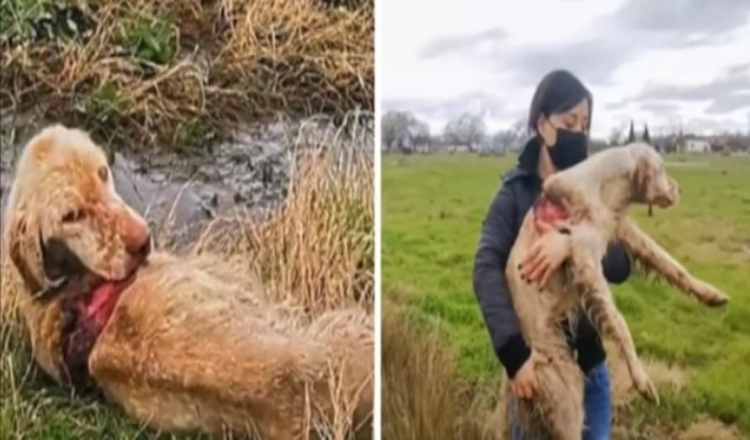 A dog was found injured in a field
