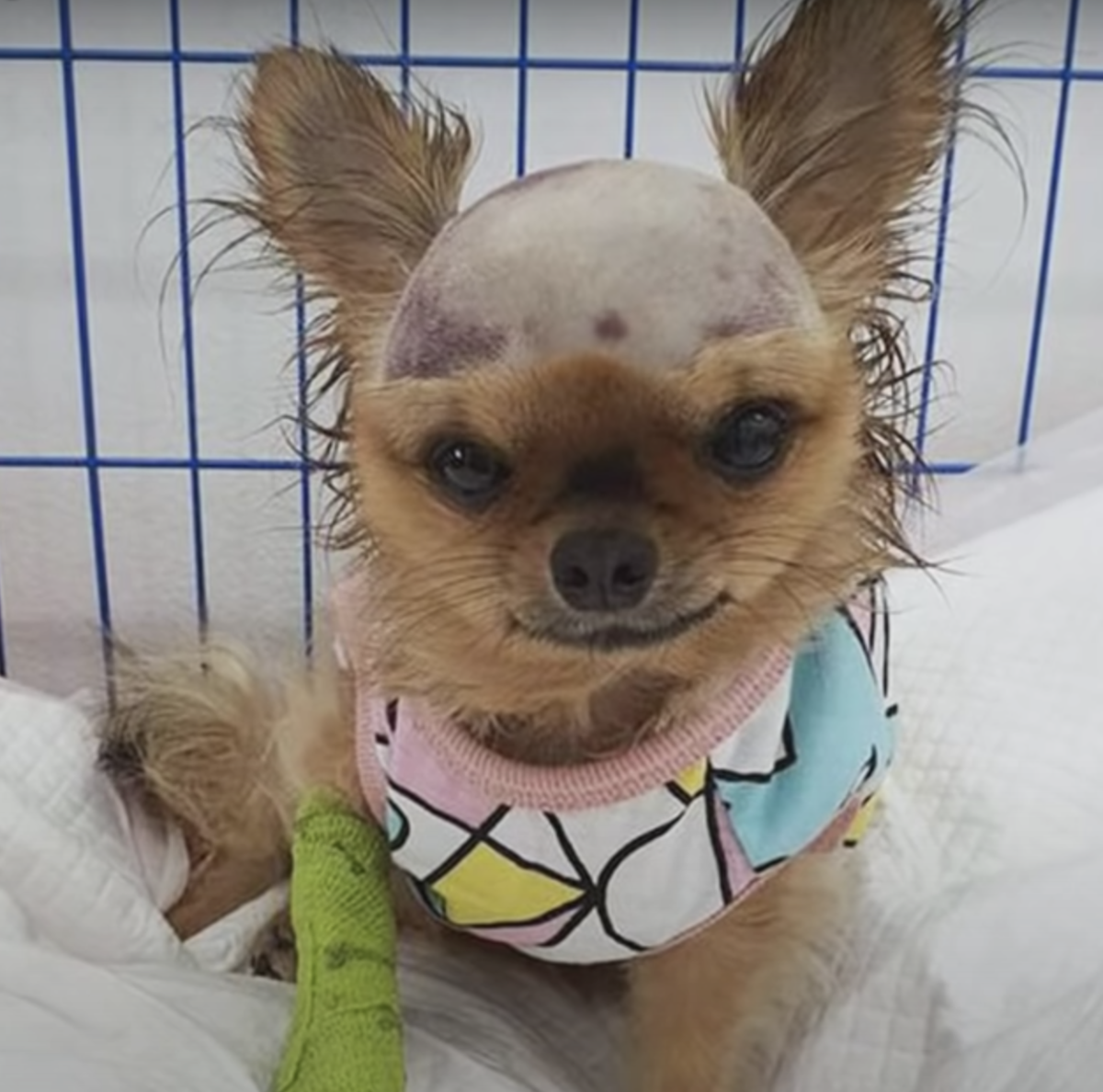 Once the little dog arrived at the vet clinic, he was assessed immediately. His head trauma meant his future was uncertain. Every hour mattered as he was closely monitored. If he made a turn for the worse, there wouldn’t be much the vet could do. But everyone was already so fond of the little fighter. His new human friends and advocates would ensure that the little pup was safe and not in pain.