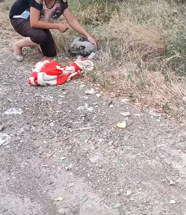 This is Peggy! She was left by the roadside for almost 3 days. Peggy is dumped like garbage and she has little chance to survive in this desolate place. She was dumped by a family she trusted and loved. She cried for 3 days, looking at each car, hoping the owner would come back to pick her up. Of course, no one stopped to help take this baby. Suddenly I saw a plea to Peggy, and I stopped.