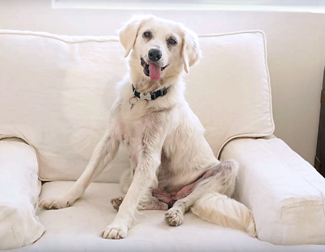 Today, Molly looks like a whole different dog. She received treatments for her skin condition, and all of her beautiful white fur grew back.