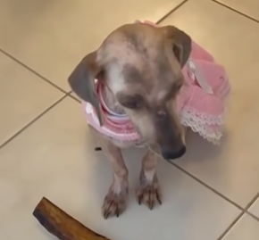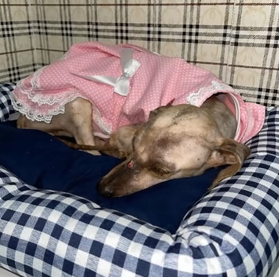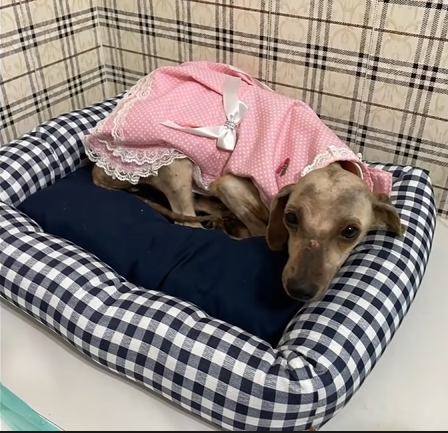 currently she is very sick covered in hair extremely anemic ,she’s just skin and bones