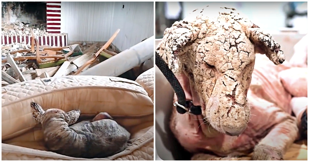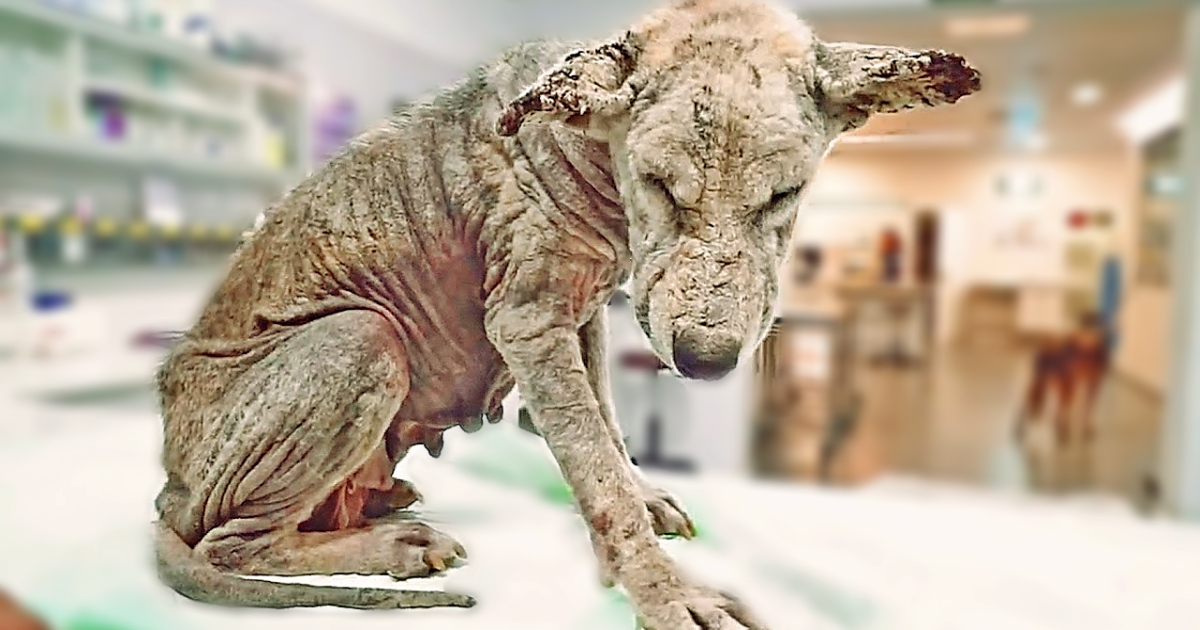 When rescuers approached her, she was so sick, she didn’t even move. Her fur was completely gone due to awful skin conditions that left her crusty and bleeding.