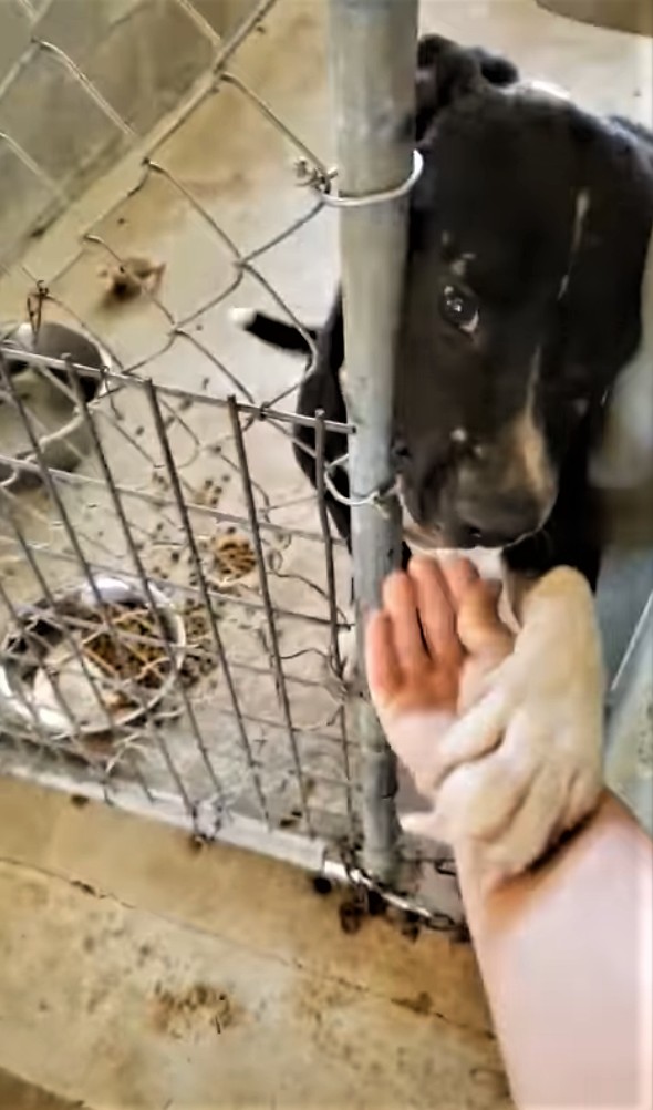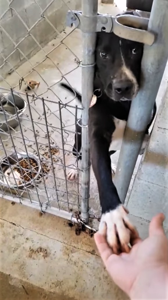Shelter Dog Desperate For Adoption Tries To Hold Hands With Everyone Passing By His Kennel
