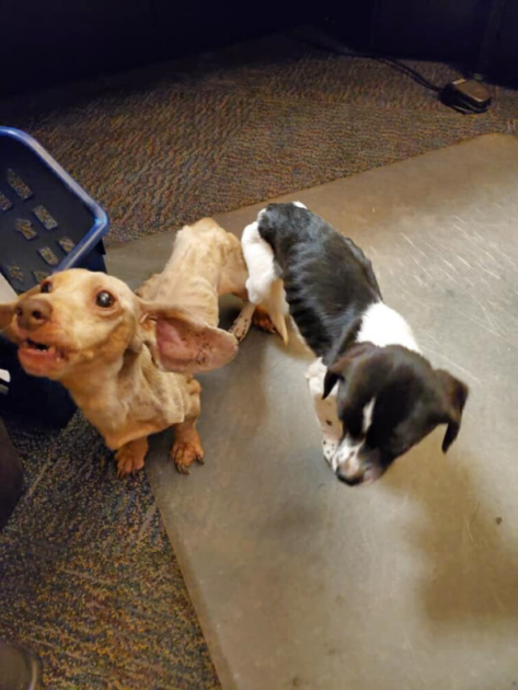 The sweet duo was found all alone in the parking lot at the popular retail store. What makes this story heartbreaking is the condition of both pups.