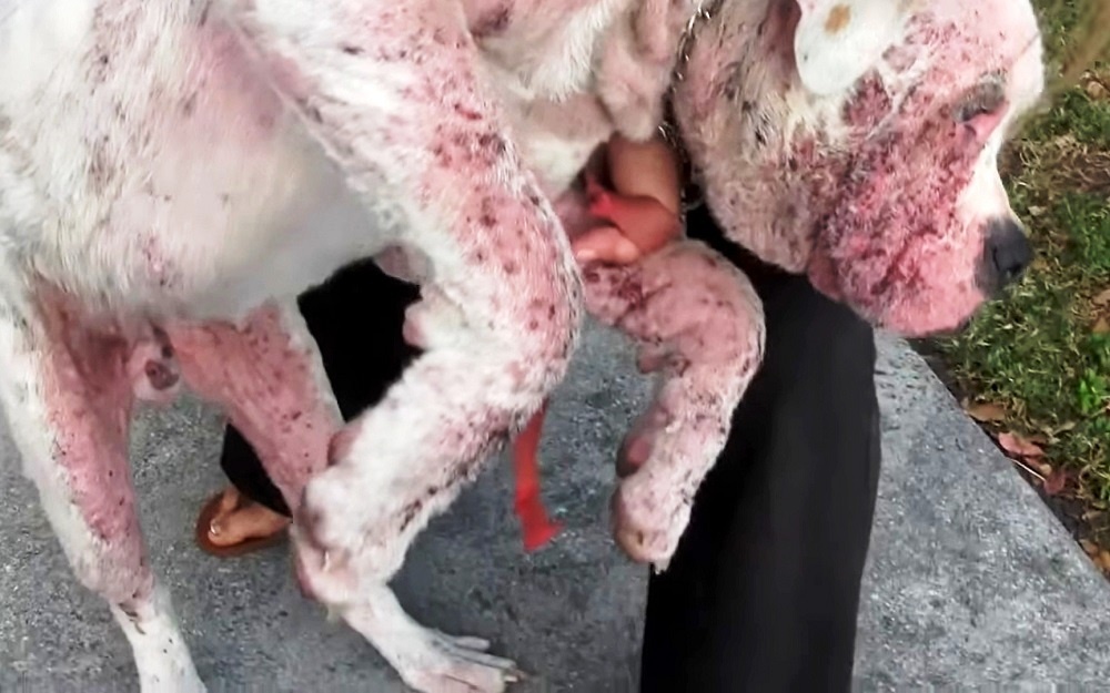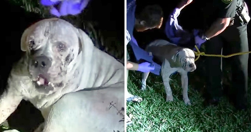 That’s when a visiting couple spotted the scared and confused Powder and reached out to him. They called the cops at Broward Sheriff’s Office and assured the weakened dog that he would be getting help soon. But when the cops arrived, they realized that Powder was too sick to even stand.