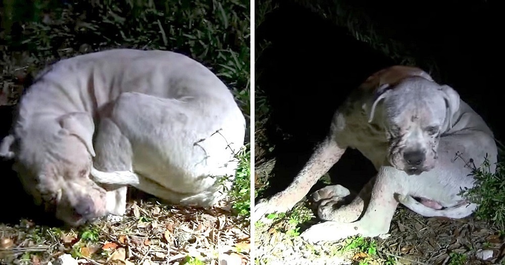Sick Dog Dumped In Deserted Wetland Sees A Light Flashing On Him And Looks Up