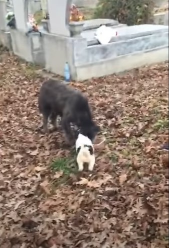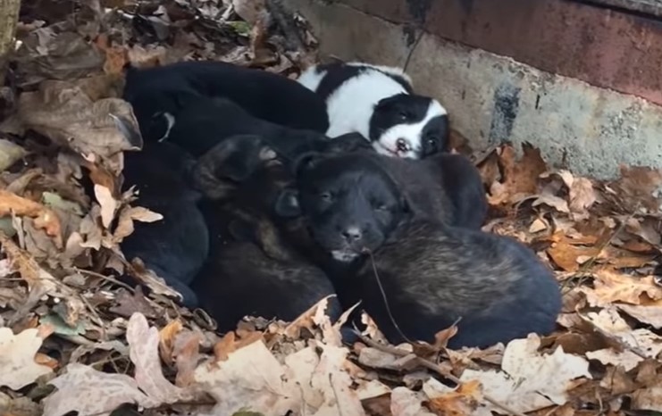 A kind woman used to fed the mom and her puppies in the cemetery.
