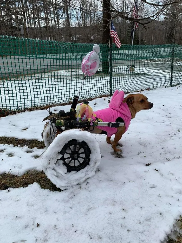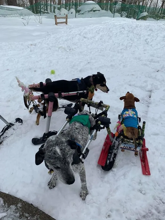 Six abandoned dogs left in the freezing snow found warmth and happiness in her loving home, where her compassion gave them a new lease on life
