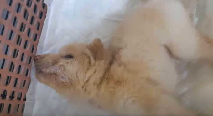 Small puppy was left aloned under a tree, can not stop crying in pain desperate waiting for help