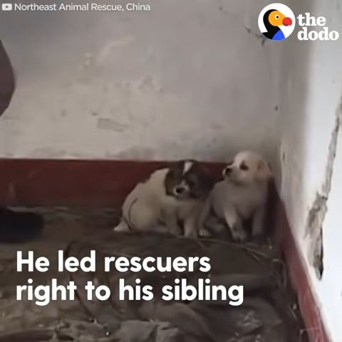 So, the rescuers decided to follow him, and he took them to an abandoned building, where they found another pup sitting in the corner.