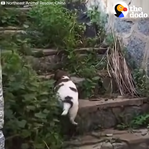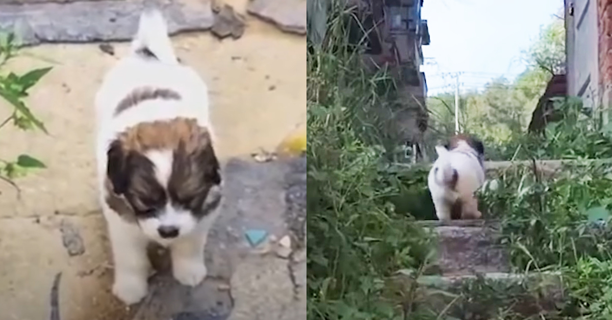 Stray Pup Strongly Asks Rescuers To Follow Him To An Abandoned Building