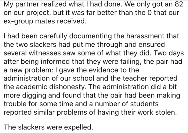 Student Takes Revenge On His Group Members After They Take Credit For His Work