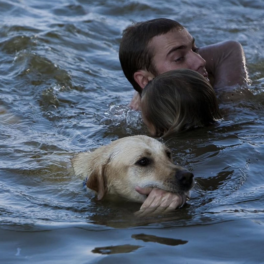 The fearless dog jumped into the turbulent river without hesitation, rescuing its owner and becoming a local hero celebrated by everyone