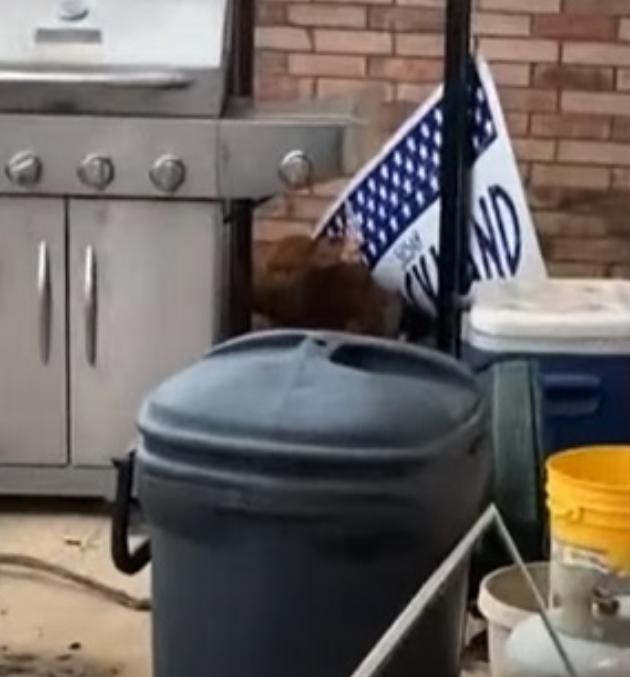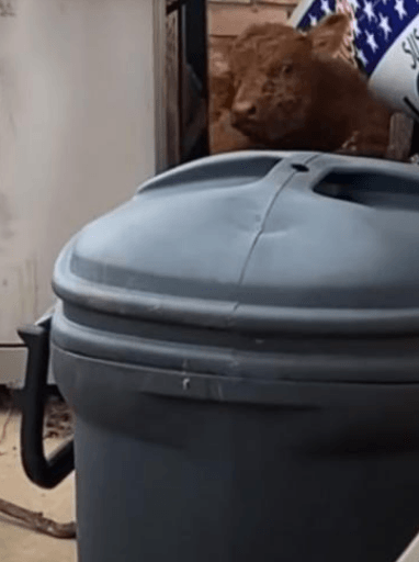 Then the owner turns towards the new «dog.» At first, the animal can hardly be detected, as it tried to hide behind a garbage can.