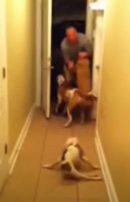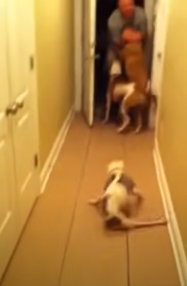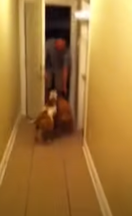 Many have asked why Emma doesn’t have a doggy wheelchair. Emma has had several wheelchairs. Unfortunately, she refuses to use any of them. We have had custom ones made even. We have worked with the companies to teach her to use it, but she will have nothing to do with it or with a “drag bag” or harness. She’s always been this way. Emma has no idea she’s “special”. She loves life and runs and plays well on her own outdoors. She just has a little trouble on the tile indoors. We do have rugs layed out for her all over the house, but we did not have any in this hallway at the time. That’s why you see her hopping to him. Please watch her other videos on here or on her Facebook page (link below) to see how she really gets around.
