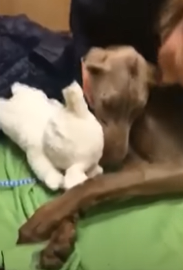 Just beautiful. Between the dog’s will to forgive , capacity to heal and determination he’s beautiful! The love he received from all of you made it safe gift him to be a puppy again! Thanks for giving him his life back!