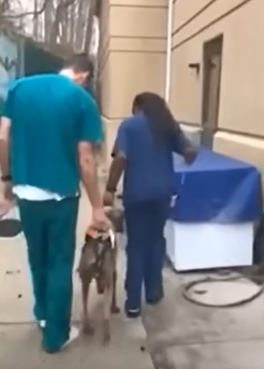 Everyone from his rescuers, surgeons, physical therapists, new parents (which I THINK were the people who found him and brought him to get help)and everyone who helped save, heal and love this amazing dog, are the true definition of Humane, and show people at their best and most loving.