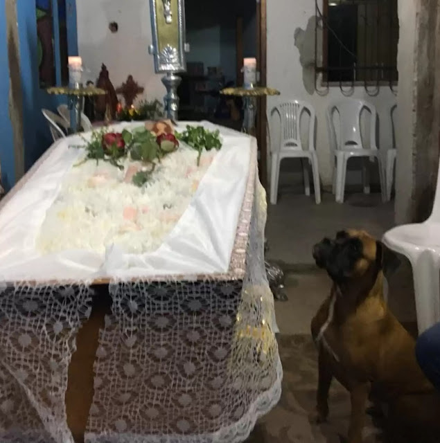 Belinha astonished everyone by remaining at Maria’s side throughout the rest of the service, exactly as she’d always done when Maria was alive. Neto wanted to photograph those sensitive moments, writing:
