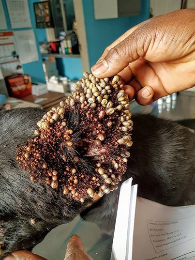Ticks nearly killed this dog until rescuers came to her aid