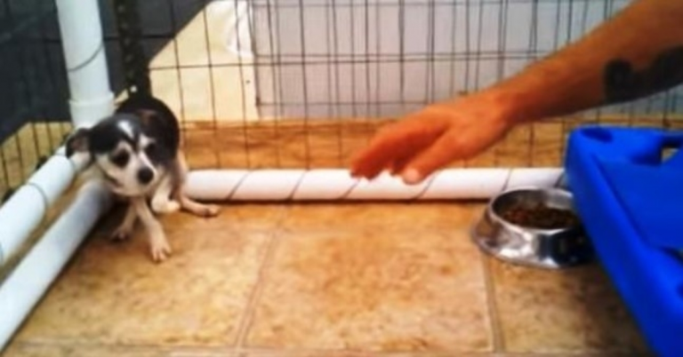 Tiny Dog Abused For Babies In Puppy Mill Cowers In A Corner When Man Approaches
