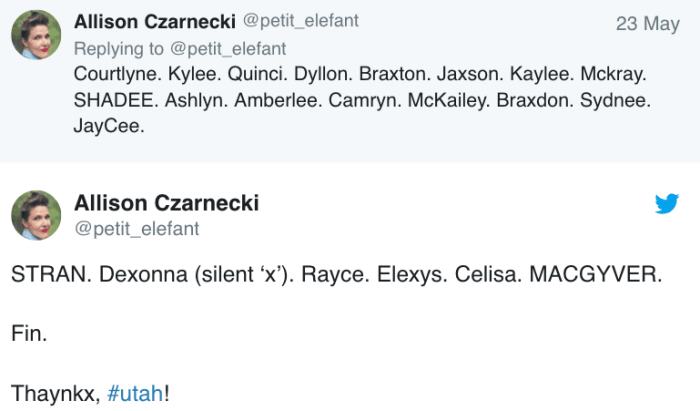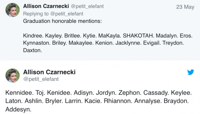 Take, for instance, the case of Allison Czarnecki, a Utah mother who took to Twitter one evening to unveil a collection of the most outlandish and preposterous names she stumbled upon in her child’s yearbook. To encounter such a plethora of nonsensical names in one place… well, the situation can only be summed up in so many ways.