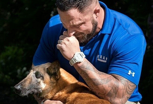Adam Wylie, an Air Force Staff Sgt., hadn’t seen his military dog, Emra, for three years, writes ilovemydogsomuch