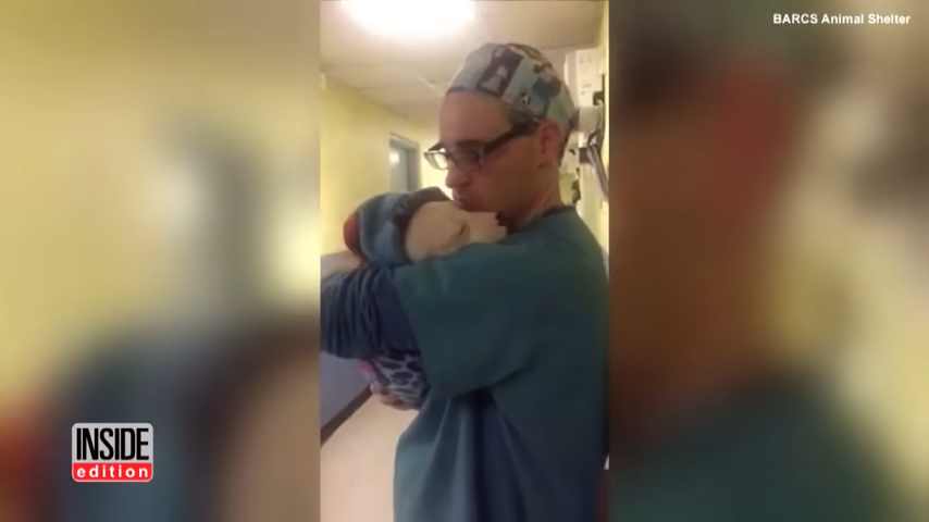 When Surgical Assistant Dennis Moses heard the puppy cry, he immediately picked up Meesha and began to comfort her. Fortunately, a bystander managed to record this amazing moment.