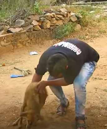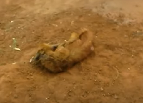 Sharp object stuck in the mouth of an abandoned puppy