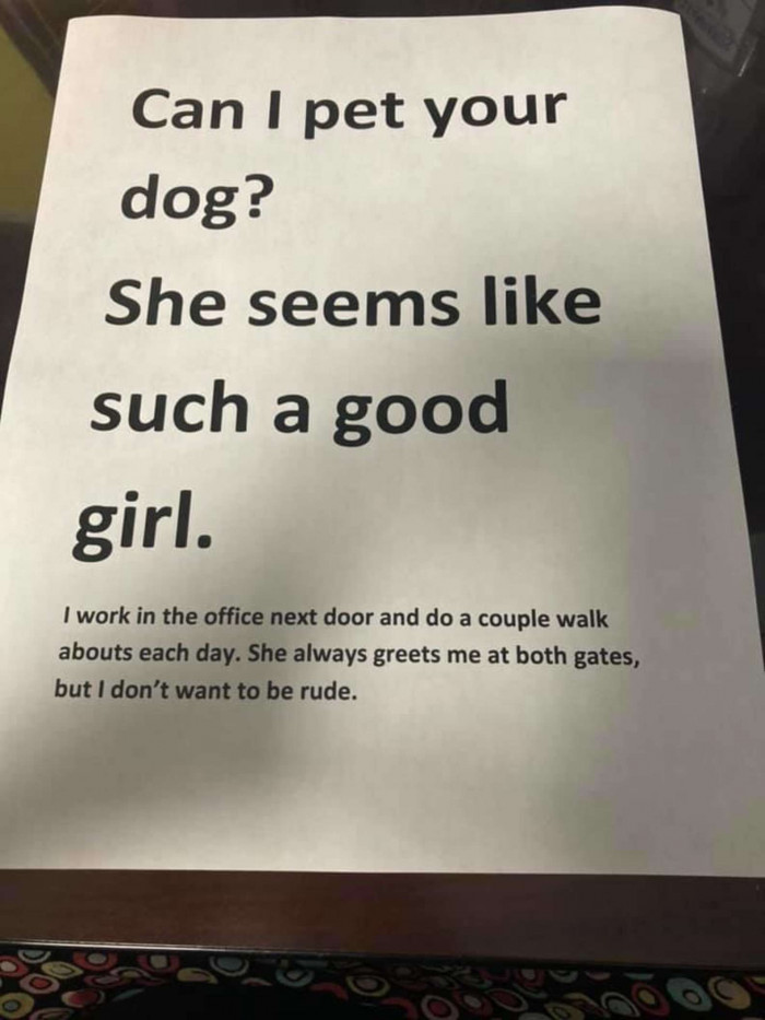 Woman Asks Neighbour For Permission To Pet Their Dog In A Note
