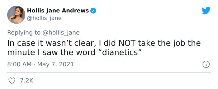 Unbeknownst to Hollis, the couple adhered to the Scientology faith. While this aspect itself wasn’t inherently problematic, her perceptions shifted upon attending the interview.