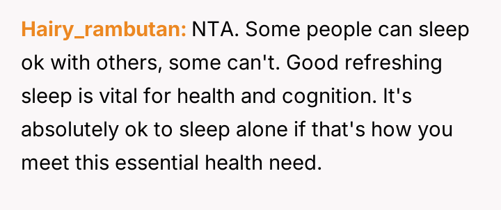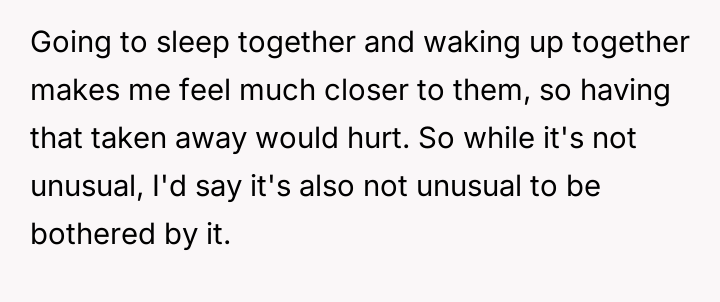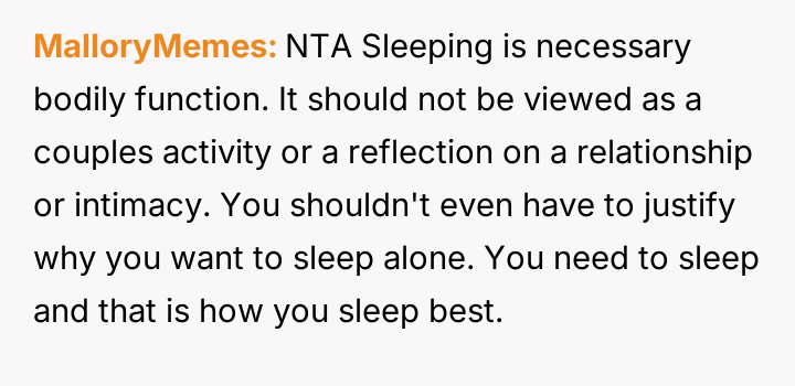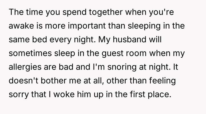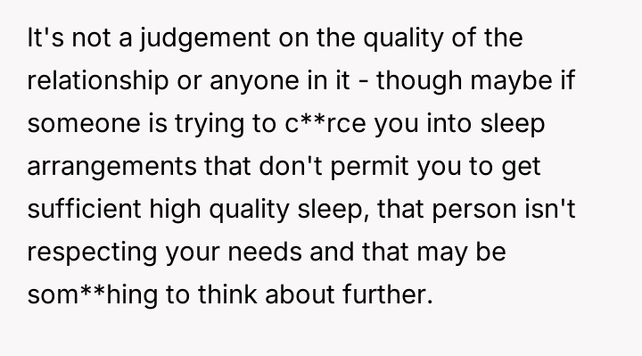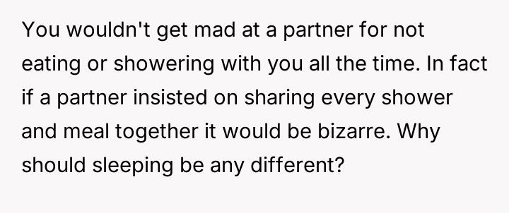 Was her need for undisturbed sleep a dealbreaker, or was her partner stuck in an outdated view of romance?