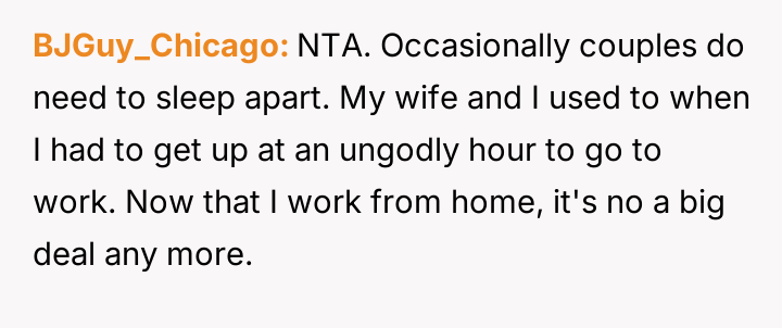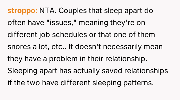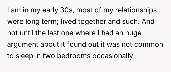 ‘AITA for wanting to sleep sometimes in different bedrooms in my relationship?’