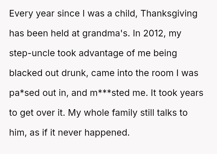 A family Thanksgiving turns into an explosive confrontation, revealing deep-seated trauma and a shocking betrayal. The victim, finally setting boundaries, finds herself ostracized by the very people she sought to protect. Will the truth finally set her free, or will she be forever silenced?