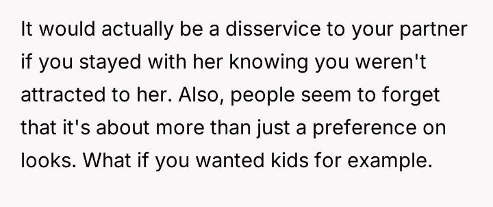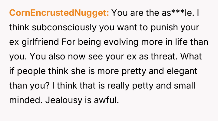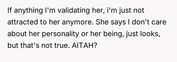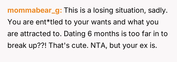 The ex-partner accused the OP of only caring about physical appearance rather than her personality or ident*ty.