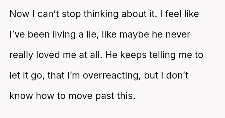 This has left the OP feeling betrayed and questioning the entire foundation of her marriage, leading her to wonder if she is overreacting to this serious disclosure.