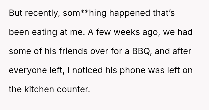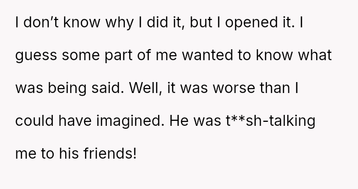The core conflict began when the OP discovered, by chance, messages on her husband's group chat after a recent barbecue.