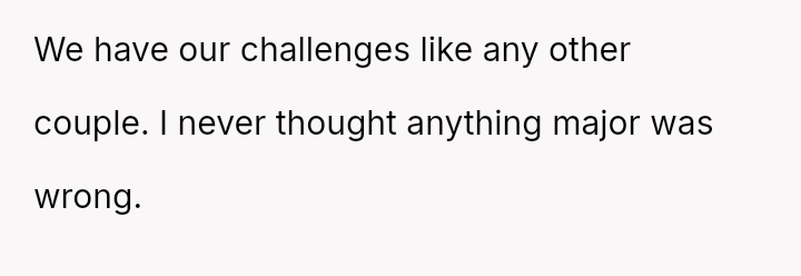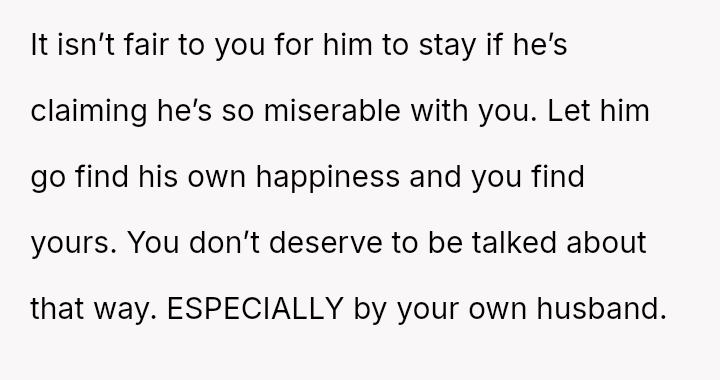 The OP is currently in a state of intense emotional distress, feeling as if her marriage has been built on a lie after learning her husband’s private negative opinions about her and their relationship.