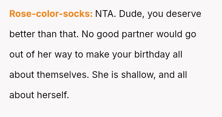 The core conflict arises from a significant mismatch between the OP's expectation of celebrating his birthday and the girlfriend's ex****ion of the plan, which prioritized socializing with her own circle over acknowledging the OP.