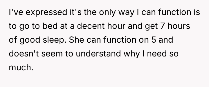 The central conflict is the gap between the OP's significant, sustained effort to adhere to the es**blished routines and his girlfriend's focus on minor deviations or perceived slights, often leading her to check out of the relationship.