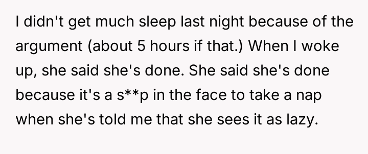 My (26M) Gf (27F) said she wanted to end our relationship because I fell asleep out of exhaustion.