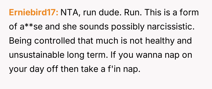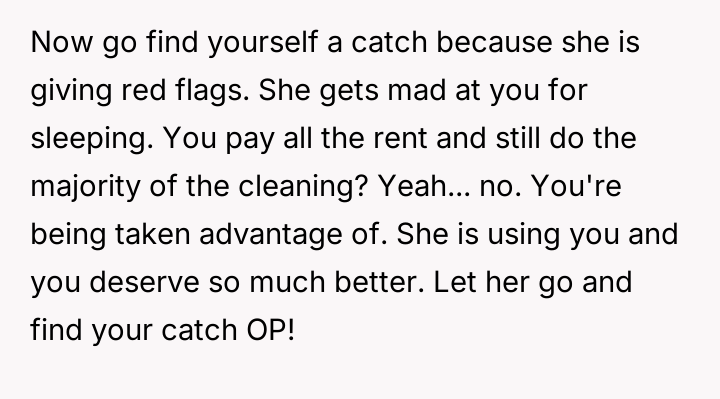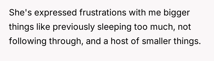 This culminated recently when, after a night of little sleep due to an argument, the OP took a two-hour nap on a day he did not have to work, which his girlfriend interpreted as laziness and a sign that she was 'done' with the relationship, leaving the OP questioning if he is delusional about his efforts.